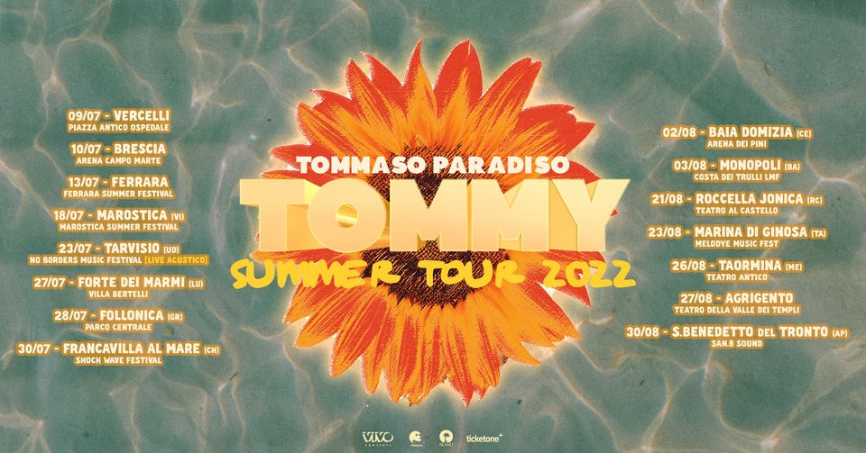 Arriva mercoledì 3 agosto a Monopoli (BA) alla Costa Dei Trulli LMF il TOMMY SUMMER TOUR 2022, prodotto e organizzatoda Vivo Concerti.